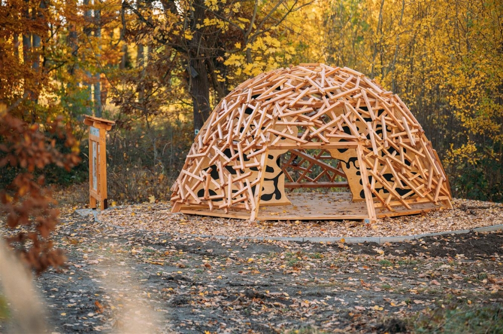 Mraveniště – herní prvek s konstrukcí z modřínu, popisující společenství mravenců a život v mraveništi.